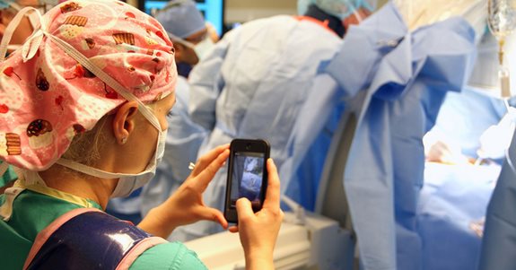 你可以想像一下這樣的場景:手上拿著手機,你可以看到手術房裡的護理師正在即時傳送相關訊息,護理師還會把對進行中的程序拍張照片傳送給你,甚至可以拍攝一段影片。當然,如果是開膛破肚的手術畫面應該不會有,總不能在手術室外又製造好幾位被嚇壞要送急診室的病患。