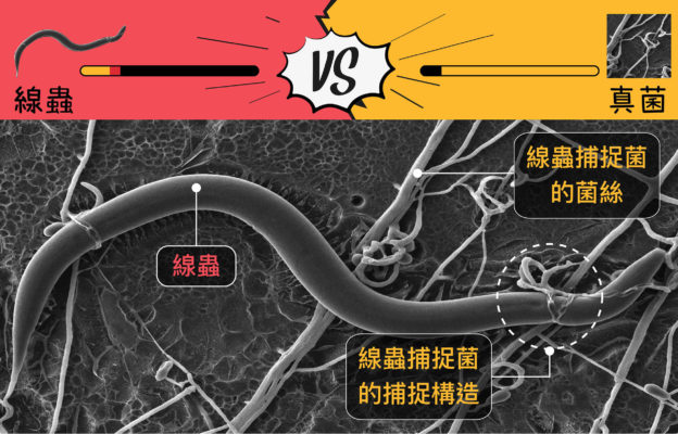 當線蟲和線蟲捕捉菌打得火熱,牠們可能沒想到,旁邊有一群好奇的研究團隊,一邊透過顯微鏡觀察戰況,一邊透過實驗解析雙方的戰鬥防禦力。為了將來的寄生性線蟲生物防治發展,讓我們對這些在實驗室犧牲小我的線蟲,致上最高的敬意。