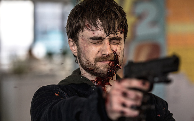 堪稱梗圖生產器的英國男星丹尼爾雷德克里夫,從《哈利波特》畢業後,盡心做公益、為社會議題發聲,身價9000萬英鎊的他,只挑有興趣的電影來演,這次《玩命Online:雙槍對決》挑戰從影以來最瘋癲的角色,不當乖乖牌巫師拿魔杖,改拿雙槍打魔王。在新片飾演一身軟爛上班族邁爾斯,平時無聊就愛當網路檢舉正義魔人,一次留言意外惹上暗網「死陣」真人直播老闆,雙手半殘被釘上手槍,連褲子都穿不好,必須在100發的子彈內,成功擊殺第一名的玩家妮克絲才能活命,千萬觀眾全程LIVE連線,想逃都逃不掉!