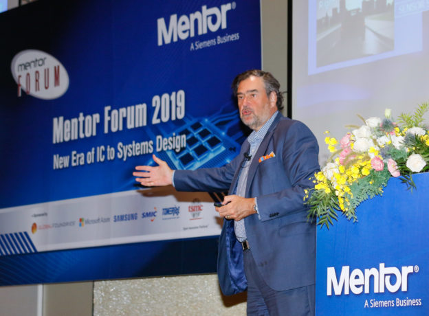 Mentor 是三大 EDA 工具之一,相比競爭對手具備完整的 SOC/IC/FPGA/PCV/SI 設計工具與解決方案。Sawicki 在大會演講時段表示,2017 年西門子購併 Mentor,帶來充足的財務後援,而在通路上也擴展 Mentor 的視角和觸角。Sawicki 說西門子很認真做 digital twin,在真的製造原型,如晶片,或是造車子前,就在模擬時就預測運算的效率,加上 Mentor 旗下 EDA 工具更加強西門子優勢。