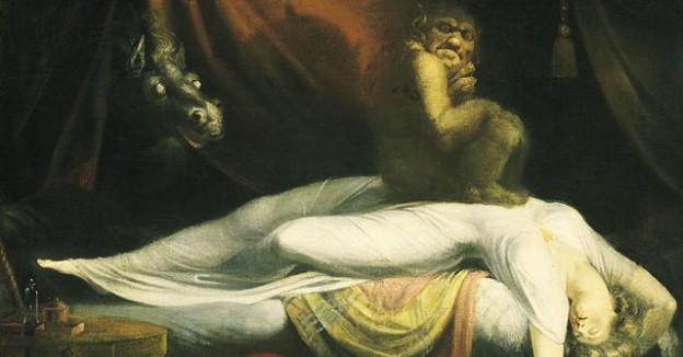 所謂「鬼壓床」,就是發現自己從睡眠中醒來,但是全身卻不能動,有些人可以張開眼睛,然後看到床旁邊有鬼正在看著自己,或是覺得有什麼東西壓在自己身上,導致不能移動。因為不由自主的過程及看到了原本就在害怕的事物,因此鬼壓床特別令人恐懼,這種全球共通的現象,或許就是英籍畫家約翰菲斯利 (Johann Heinrich Füssli) 的畫作「夢魘」(The Nightmare, 1781) 一個怪物壓在女子胸前的靈感來源(上圖)。