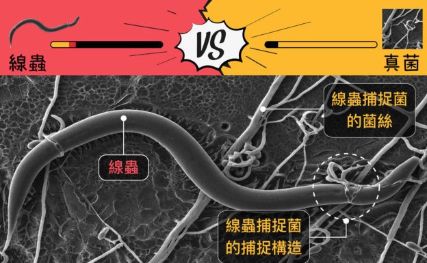 自然界沒有一個物種是邊緣人,都是複雜生態系的一份子。其中,獵食者和獵物、宿主和病原菌均是生態系很常見的關係,以地球數目最多的動物「線蟲」為例,若我們能了解牠的天敵──線蟲捕捉菌和杏鮑菇等真菌是如何捕抓線蟲,就有機會找出生物防治方法,對抗危害人類或農作物的寄生性線蟲。