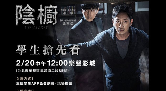 轉載從: 開眼電影網2月20日《陰櫥》邀學生「免費試膽」! 韓國最新懸疑恐怖片《陰櫥》,找來實力派「雙帥演員」河正宇、金南佶聯手主演尋找女兒的下落,兩人將打開壁櫥,揭開背後的驚人真相。 googletag.cmd.push(function() { googletag.display('div-gpt-ad-1557821465943-0'); }); 河正宇的最新話題新作《陰櫥》,不僅演員卡司強大,精湛的演技不用多說之外,更新穎地以日常生活隨處可見的壁櫥為題材,再加上古老櫃子開開合合的聲音,毛骨悚然的恐怖音效將觀眾拉進電影當中,彷彿自己就站在壁櫥前面,手心冒汗地跟著河正宇打開衣櫥,令觀眾全身起滿雞皮疙瘩,緊張不已。 昨(2/13)日片商車庫娛樂舉辦首場試片,許多觀眾觀影後紛紛表示:「劇情太精采!雖然很可怕,但就算摀住眼睛也想知道後面的劇情!」、「河正宇的演技本來就不用說,小女孩的表現更讓人印象深刻!」、「電影聲音特效太厲害!回家不敢開櫃子了…」,更有影評大讚:「是近年來數一數二的鬼片作品!」 《陰櫥》將於2月21日在台灣上映,而片商車庫娛樂也將在前一天2月20日中午12點於樂聲影城邀請學生搶先「來試膽」!當天只要在學生本人憑有效學生證就可以大銀幕免費搶先看今年初最恐怖懼作《陰櫥》,心臟夠強大的同學們,也可以免費下載「車庫學生」APP並憑學生證線上註冊,便可以馬上APP免費劃位本場特映,搶先取得「恐怖觀影VIP」位置!座位數量有限,換完為止,當天也請遵守現場公佈之電影分級規範及影城相關規定,更多活動詳情請見車庫娛樂粉絲專頁。
